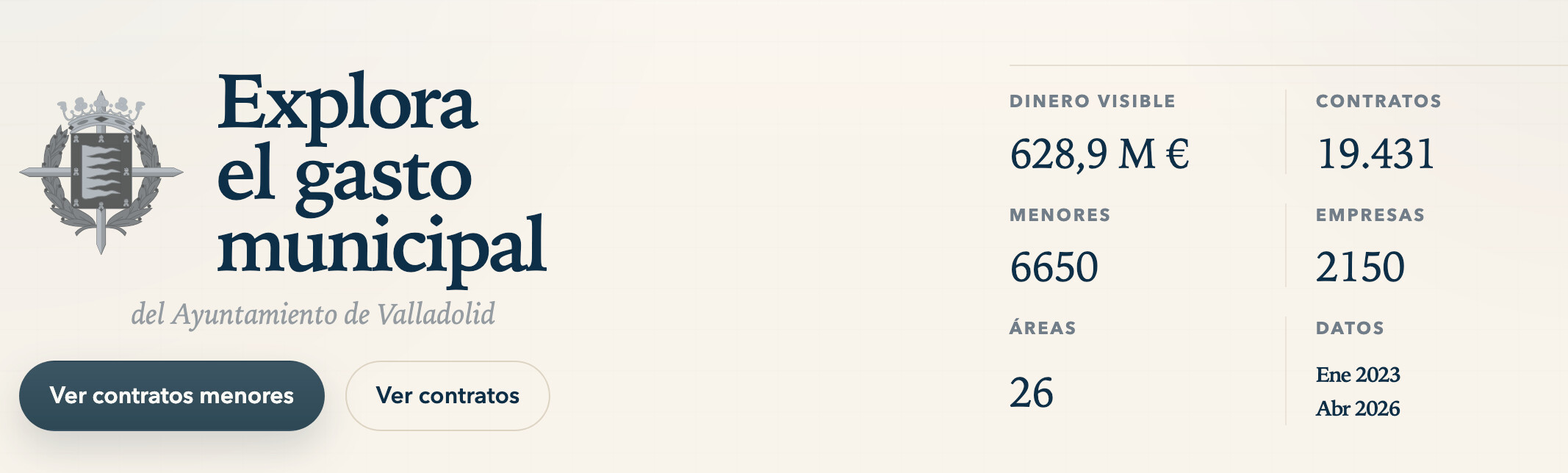 Es un buscador que clasifica la actividad de contratación municipal desde 2023 que esté disponible en los portales de transparencia. Aunque el Ayuntamiento todavía no ha publicado en su web sus datos propios de finales de 2025 (sólo de los tres primeros trimestres), la herramienta ya recoge y permite filtrar a mayores todo lo que se publica en la Plataforma de Contratación del Estado. En un momento en el que muchas inversiones en los barrios parecen estancadas, esta web permite poder ver los movimientos económicos que se producen cada día.